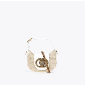 The Micro Chelsea Hobo Purse Is Crafted From A Beige Rattan Fabric With Bone Trims The Front Flap Is Adorned With An Antiquated Brass Oval Trim With Eagle Head At The Center Embellished With Crystals