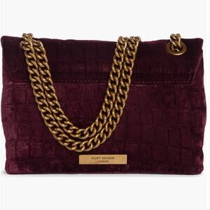 NWT Kurt Geiger Mini Kew Plum Velvet Crossbody Bag with Brass Chain msrp$199