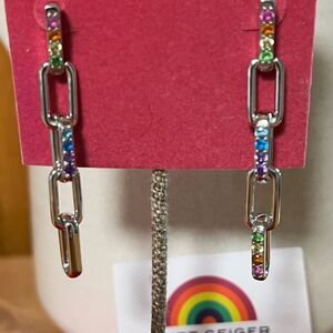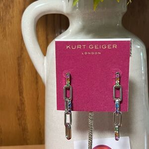 NWT Kurt Geiger Silver and Multicolor Linear Chain Earrings #KGER