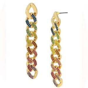 NWT Kurt Geiger London Rainbow Pave Link Linear Earrings #TSER