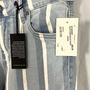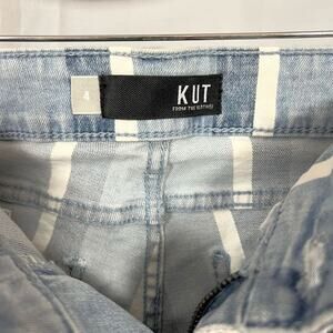 Kut from the Kloth Connie High Rise Ankle Skinny. Light denim with white and darker denim stripes. 99% Cotton 1% Spandex. Unfinished hem.