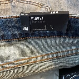 Brand New With Tags Kut From The Kloth Denim High Rise Gidget Fray Short Size 20W Distressed Blue.