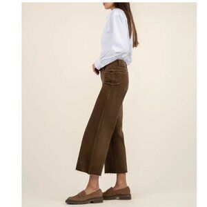 NWT Kut From The Kloth Meg Hi Rise Raw Hem Wide Leg Velvet Pants Brunette 14