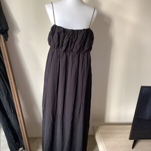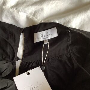 NWT L' Academie Women's Karsyn Midi Dress Black Size L Flowy Empire Waist Dress
