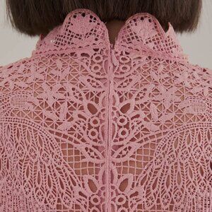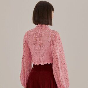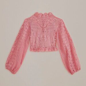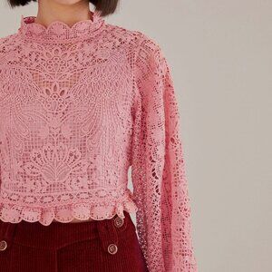 NWT L Blush pink guipure long sleeve blouse FARM RIO