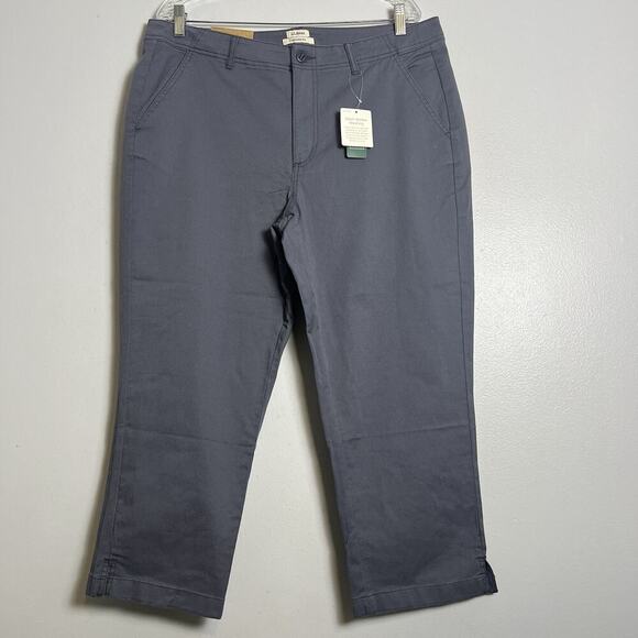 NWT L L Bean Women's Cropped Pants Gray Plus Sz 16 Organic Cotton Casual Outdoor