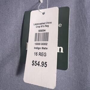 NWT L L Bean Women's Cropped Pants Gray Plus Sz 16 Organic Cotton