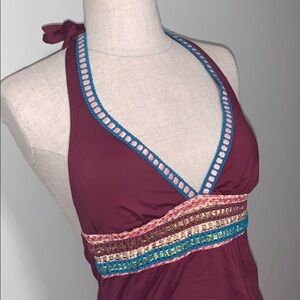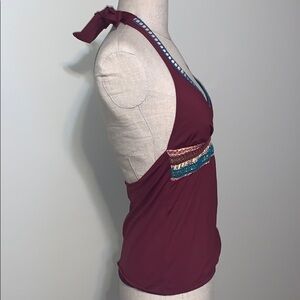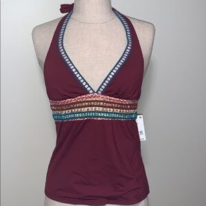 LA BLANCA Running Stitch Halter Tankini Top Women's Swimsuit In Mahogany Size 4 NWT Never worn