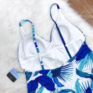NWT LA Hearts Blue Tropic Open Back One Piece Swim