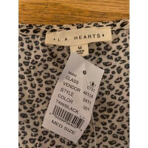 Chic and trendy, the NWT LA Hearts Pacsun women's blouse in medium size boasts a stylish animal print with a tied front and v-neck design. Perfect for a fashion-forward wardrobe.