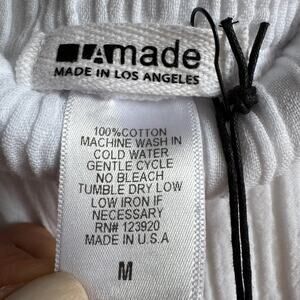 Details: White LA MADE “Cali Chill” wide leg pants in lightweight gauze cotton. Flowy, relaxed drape. Slightly sheer in certain light. High-waist, easy pull-on style with elastic waistband. Perfect for coastal days, resortwear, travel, lounging, or casual everyday wear. Timeless, effortless, breathable, and comfortable. Made in Los Angeles.