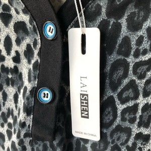 NWT LA SHEN Women’s Leopard print V-Neck button down Camo Long Sleeves Size S