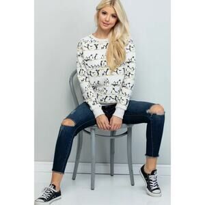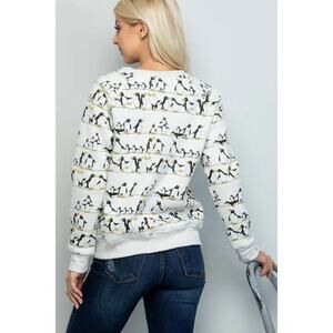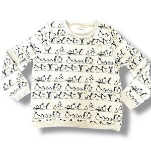 NWT L.A Soul Dancing Penguin Crewneck Pullover Sweatshirt White Women's L