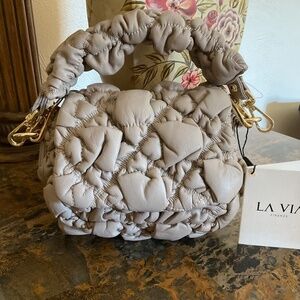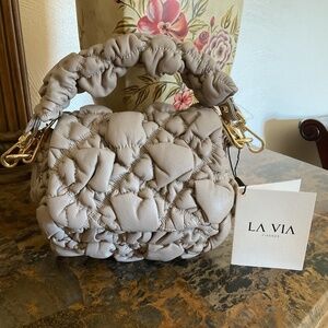 NWT LA VIA Made In Italy Leather Puffed Crossbody With Chain Detail