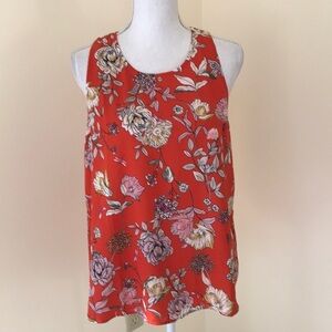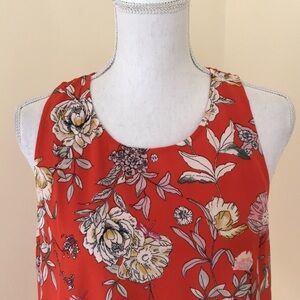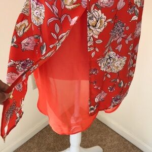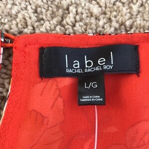 New! LABEL Rachel Rachel Roy size Large scarlet floral high low top. One button closure at back and splits open at back revealing a sheer layer.