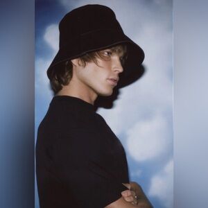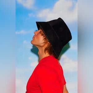 Genuine suede structured bucket hat in black.