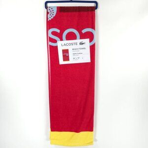 NWT LACOSTE CROC LOGO RED BEACH TOWEL 100% COTTON 36” x 72”