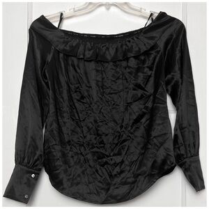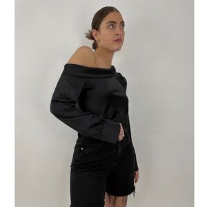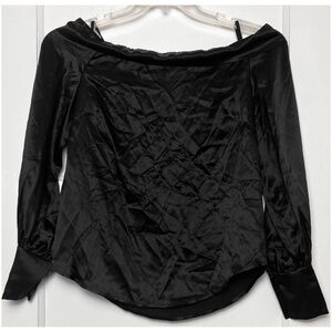 NWT L’AGENCE 70s Black Satin Off Shoulder Long Sleeve Relaxed Fit Cocktail Top S