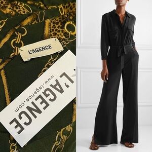 NWT L'AGENCE 70s Silk Chain Leopard Tie Waist Button Up 3/4 Sleeve Jumpsuit S