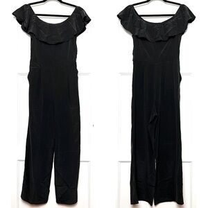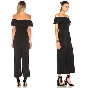 NWT L’AGENCE 70s Washed Silk Ruffled Off Shoulder Cropped Wide Leg Jumpsuit XS