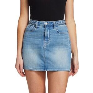 NWT L'AGENCE 90s Braided High Waist Distressed Stretch Denim Mini Jean Skirt 31