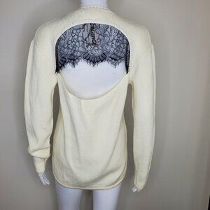 NWT L'AGENCE Antonio Lace Open Back Sweater. Size XS. Color: ivory with black lace (model photos DO NOT depict the color of the garment being sold and are to show fit and styling only -- garment being sold is Ivory)