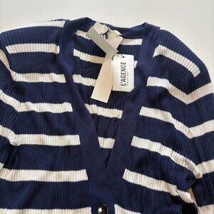 NWT L'AGENCE Corin Striped Ribbed Long Button Down Cardigan Knit Pockets Preppy
