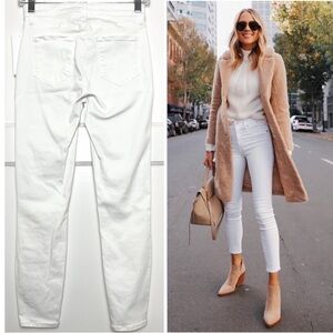 Starburst crystal embellished signature high-rise skinny jean crafted from premium, luxurious stretch denim in crisp, clean white.