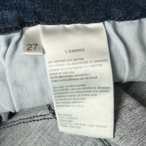NWT L’AGENCE Dark Wash Stretch Denim Low Rise Ankle Crop Capris Skinny Jeans 27