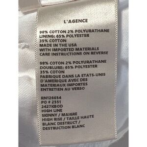 NWT L'AGENCE High Line Jean Blanc Destruct 31Size: Womens 31 Condition: New With Tags Please see photos above for all measurements, material and washing instructions. Item sold as pictured.