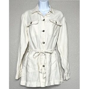 NWT L’AGENCE Ivory Linen Tie Waist Lightweight Utility Safari Shirt Jacket S