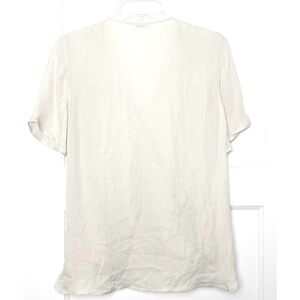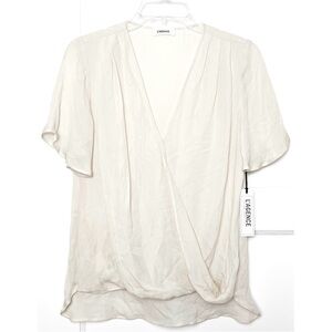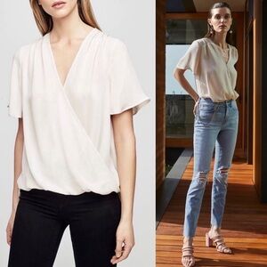 NWT L’AGENCE Ivory Silk Chiffon Short Sleeve V-Neck Draped Wrap Front Top S