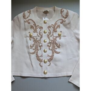 NWT L'AGENCE Kota Jacquard Cropped Cardigan Size XXL Ivory #3C511