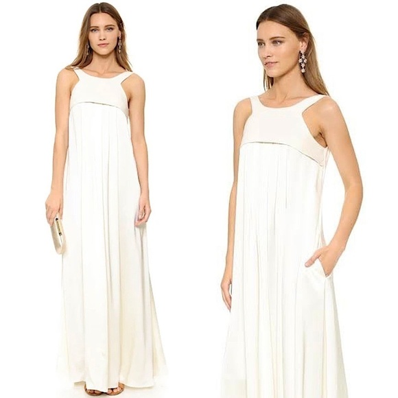 NWT L’AGENCE Satin & Linen Sleeveless Pleated Empire Waist Open Back Maxi Gown S