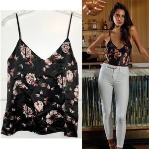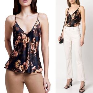 NWT L’AGENCE Silk Butterfly Floral Satin Classic V-Neck Camisole Tank Top XS