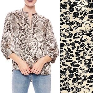 NWT L'AGENCE Silk Cotton Leopard Print 3/4 Sleeve Button Up Band Collar Blouse S