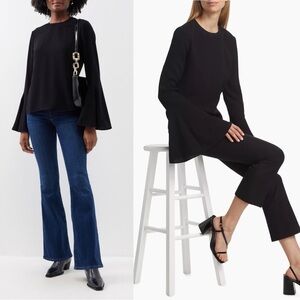 NWT L’AGENCE Silk Crepe De Chine Flutter Bell Long Sleeve Embroidered Trim Top S