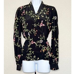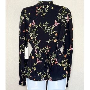 NWT L’AGENCE Silk Floral Print Shawl Collar Long Sleeve Tie Waist Wrap Blouse S