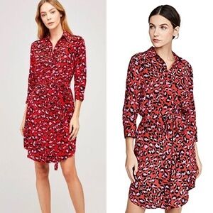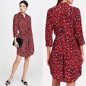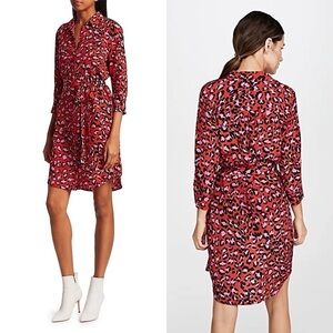 NWT L’AGENCE Silk Red Leopard Button Front Tie Waist 3/4 Sleeve Shirt Dress XS