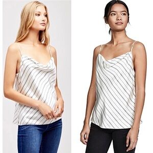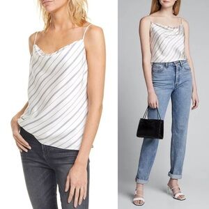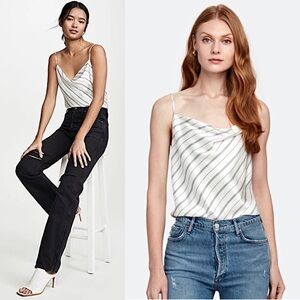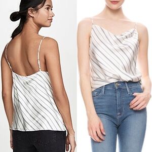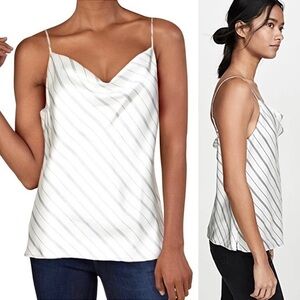NWT L’AGENCE Silk Striped Ivory & Navy Satin Draped Cowl Neck Camisole Tank XS