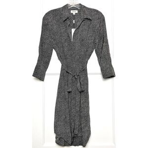 NWT L'AGENCE Silk Striped Tie Waist Button Up Collared Long Sleeve Shirtdress XS