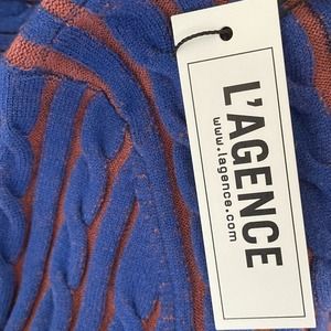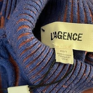 NWT L’AGENCE Women’s Ciela Midi Cable Knit Sweater Turtle Neck Blue Rust Size XS