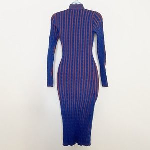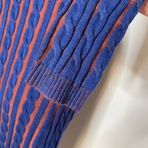 L’AGENCE Women’s Ciela Midi Cable Knit Sweater Turtle Neck Blue Rust Size XS