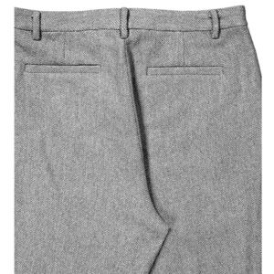 This black-white style has a slim, tailored fit in a wool-blend with a herringbone pattern is designed from an Italian suiting fabric with a soft touch and subtle stretch. There's a contoured waistband that sits securely and comfortably at the natural waist before extending into a cropped, slightly tapered leg with slant front pockets. Finished with back darts, welt pockets and a bar front closure. Bottom line: this is a refined look that definitely has a spot in your office workwear rotation.