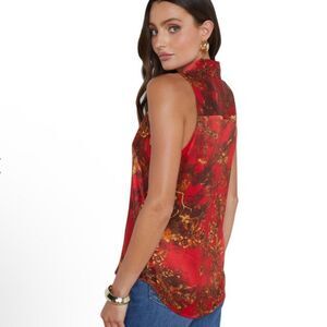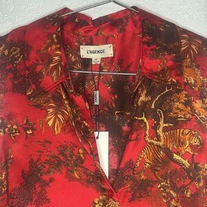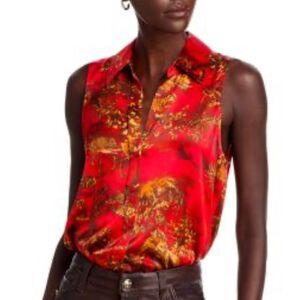 NWT L'AGENCE Emmy Sleeveless Silk Blouse High Risk Red Multi Jungle Toile Small