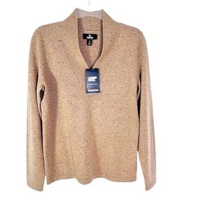 NWT LANDS' END Cashmere Shawl Neck Sweater Vicuna Heather Donegal Tan Size S
