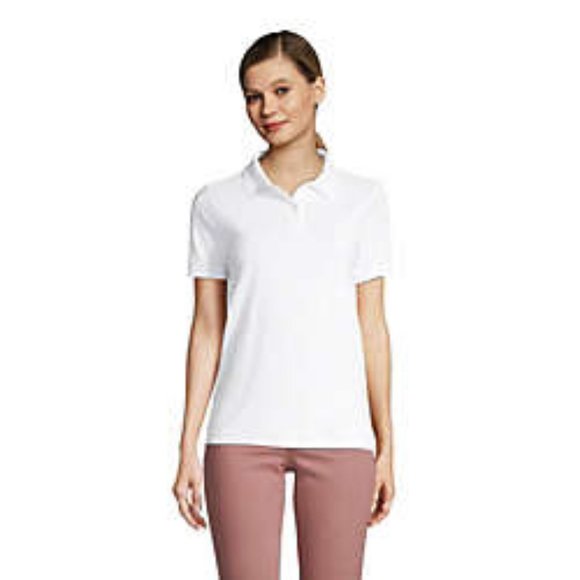 NWT LANDS' END FORM FITTING WOMEN'S MESH POLO SHIRT WHITE MT (MEDIUM TALL)