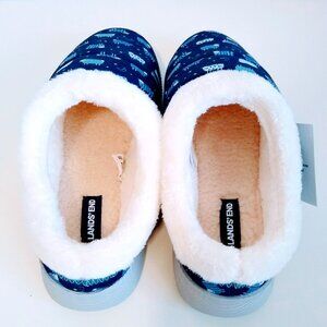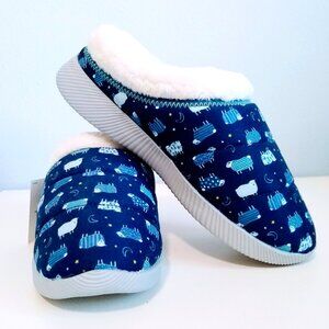NWT LANDS' END Ultra Lightweight Clog Slippers Faux Furr and Sherpa Fleece Lined. Navy color in cute sheep and starry night print.