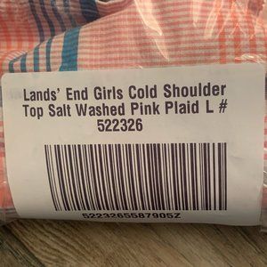 NWT (NEW IN BAG) LANDS' END GIRL'S COLD SHOULDER TOP SALT WASHED PINK PLAID SIZE LARGE 10-12.