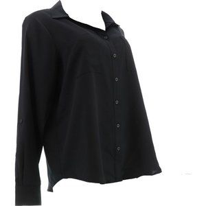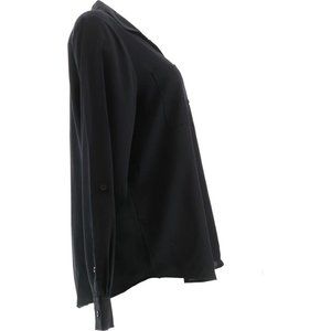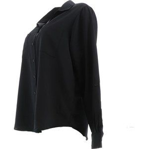 NWT LANDS' END LONG SLEEVE ROLLED TAB SLEEVE SOFT BLOUSE BLACK 14P (PETITE)